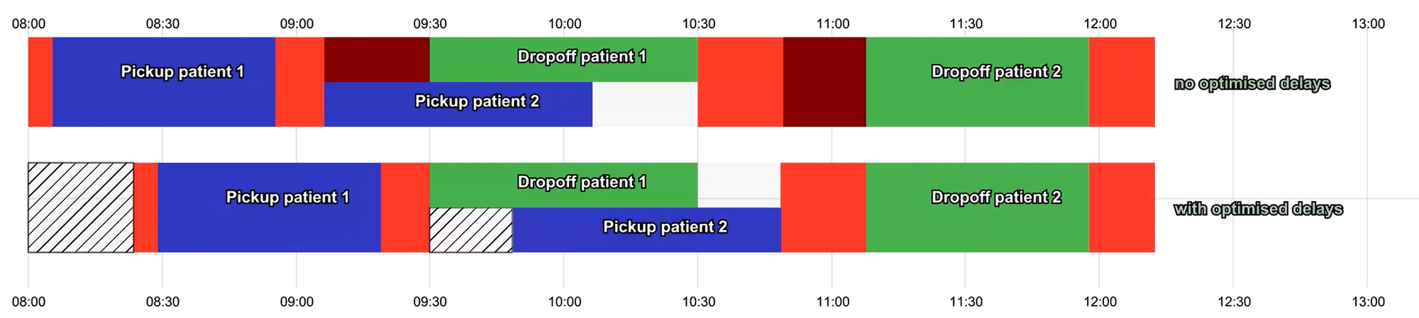 - Delays pickups to reduce transit time (delay optimisation)