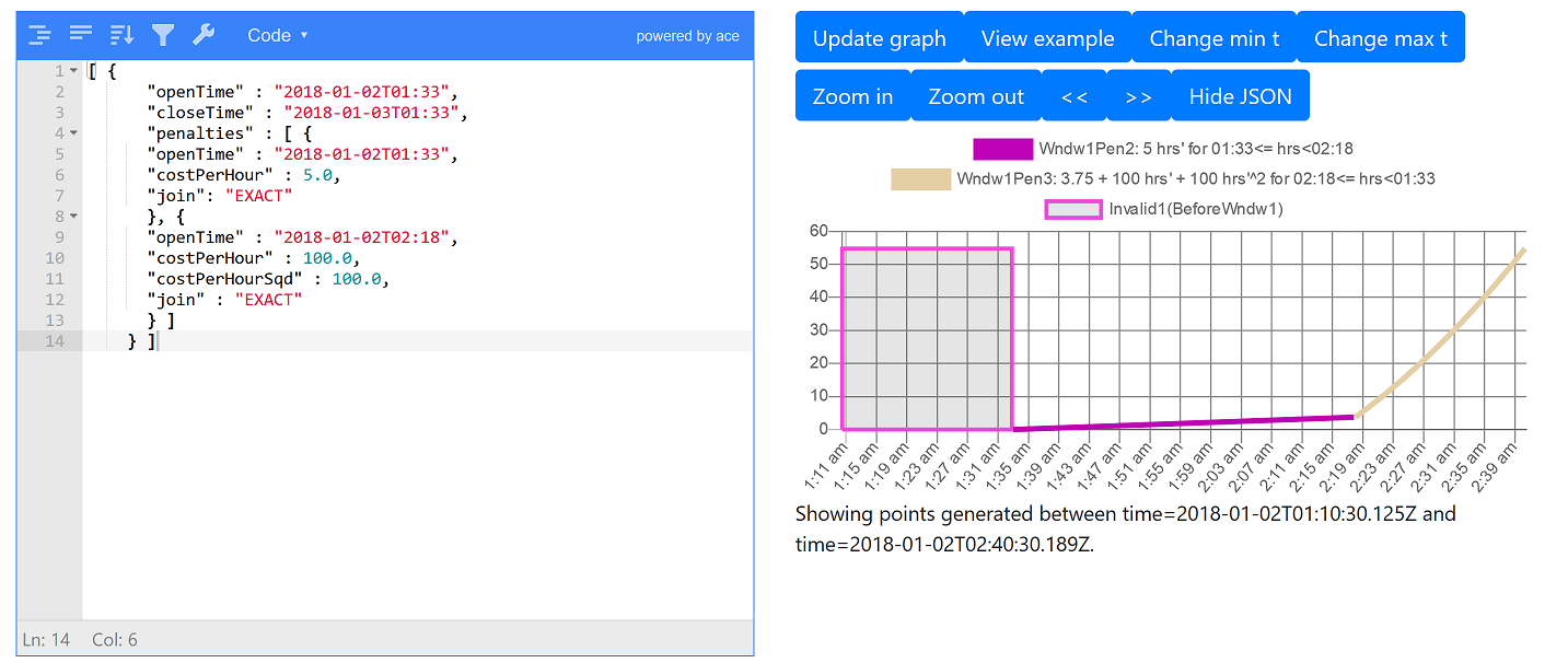 The following example JSON shows our recommended setup for hot food delivery jobs. The specific cost multipliers and times will need to be tuned to individual use cases but the structure of the job JSON (i.e. its fundamental rules) should not change: